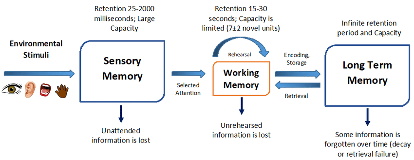 The Atkinson-Shiffrin model (aka multi-store model or modal model) was published in 1968. While still useful, modern memory research is more targeted. It’s a good example of an information-processing theory: