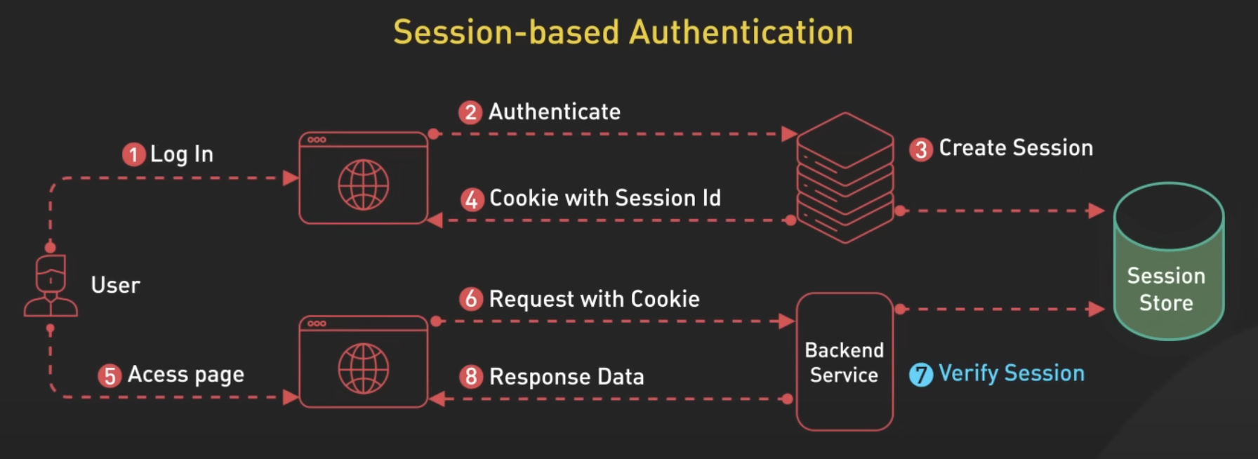 - This enabled the session-based authentication model, where the server creates a session in memory and gives the client a cookie containing a session ID.